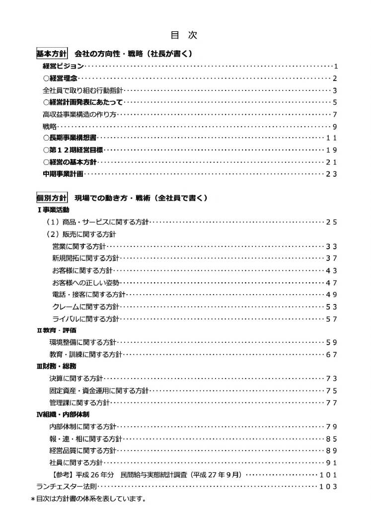 方針書(方針編)は社長自らの考え方を明文化したものです。